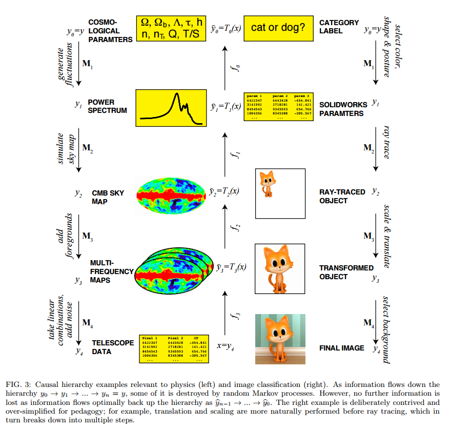 Deep learning classifiers need to reverse the hierarchical generative process (e.g. starting from image data, tell me whether it is a cat or a dog). The authors use information theory to show that the structure of the inference problem reflects the structure of the generation process. Physics has a systematic framework for distilling out desired information from unwanted noise, which is known as Effective Field Theory.