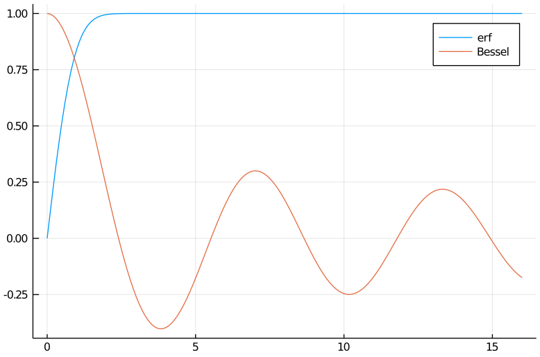 2. Using Julia. SpecialFunctions.jl provides erf() and besselj0.