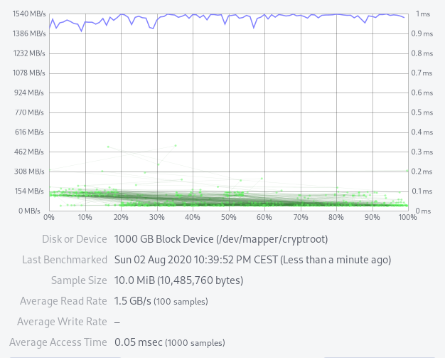 Once again read speed, this with a LUKS encrypted disk: