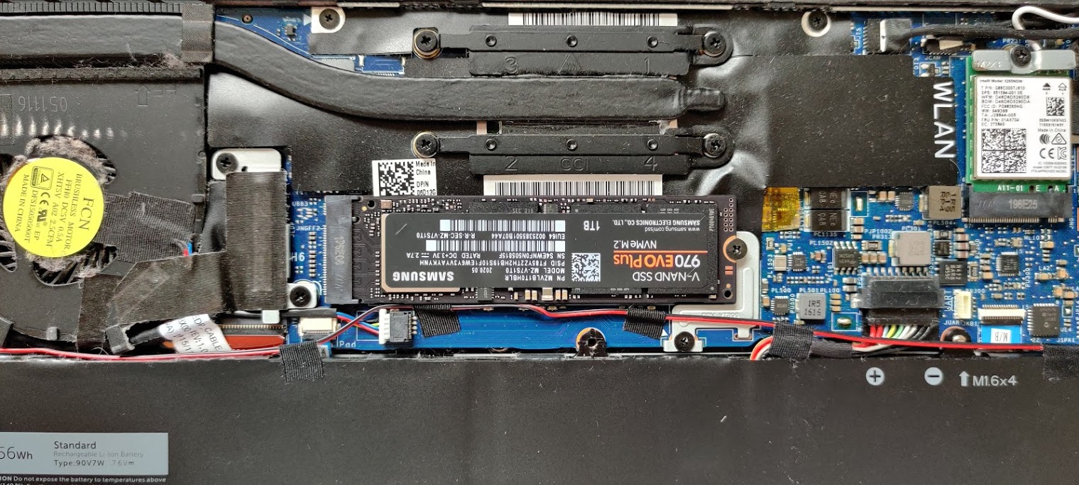 Caveat from Dell xps 13 9350 and Samsung 970 evo M.2 nvme Compatability?: