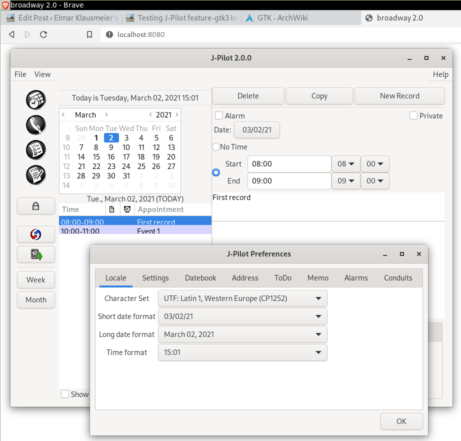 J-Pilot 1.8 still relies on GTK+ 2, which is heading towards planned deprecation. The entire work to migrate to GTK+ 3 is done by volunteers, Judd Montgomery and David Malia. This post is about testing this new experimental branch feature-gtk3 from GitHub.