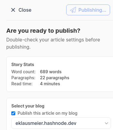, see below. Then I thought, importing would be easy. That turned out to be wrong. Instead, Hashnode is not able to import more than roughly 10 or 20 files. Also, each individual post has to be confirmed. If you have more than 300 posts, you have to confirm more than 300 posts!