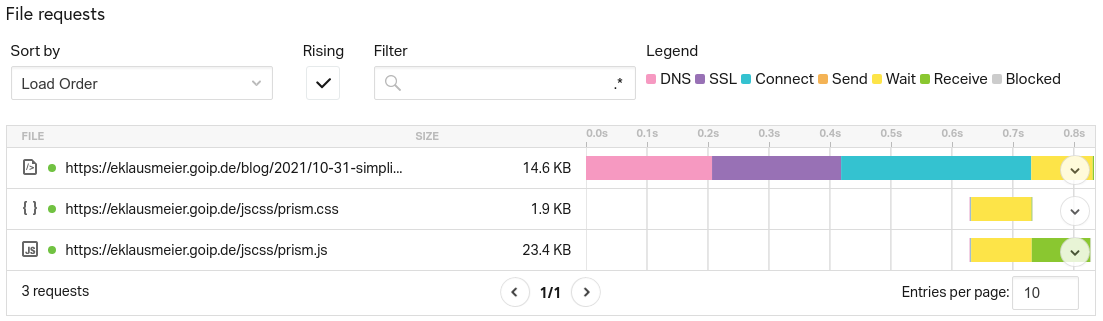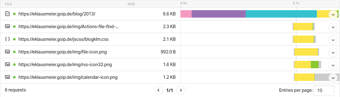To really get rid of all further requests to small files, I also inlined the CSS. The CSS file was previously in jscss/blogklm.css