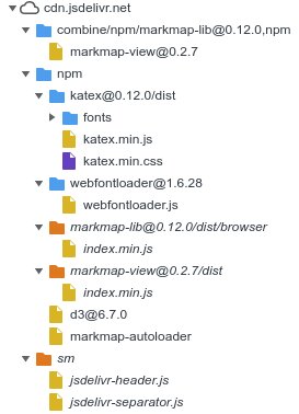 For the implementation I used markmap-autoloader from Gerald Liu. Thanks to Gerald Liu for pointing this out. See Looking for an example for using markmap in HTML file with Markdown. This is now documented here: markmap-autoloader.