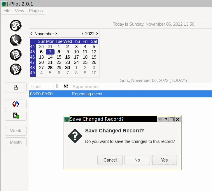 2. In Datebook: When cancelling changes in a repeating event, sometimes J-Pilot crashes, when one wants to ignore the conducted changes.