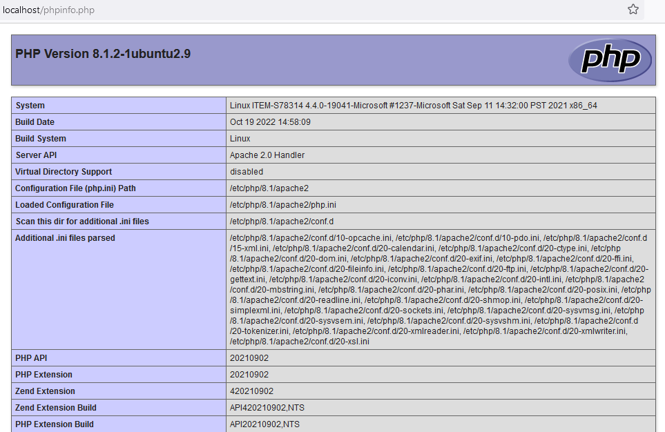 Then check with any browser whether http://localhost/phpinfo.php shows something like this: