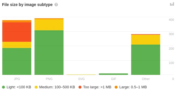 Distribution of image file sizes. Again, you can drill down from here.