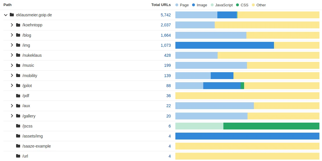 Same as above, but this time a distribution of content-types of your directories of your website.