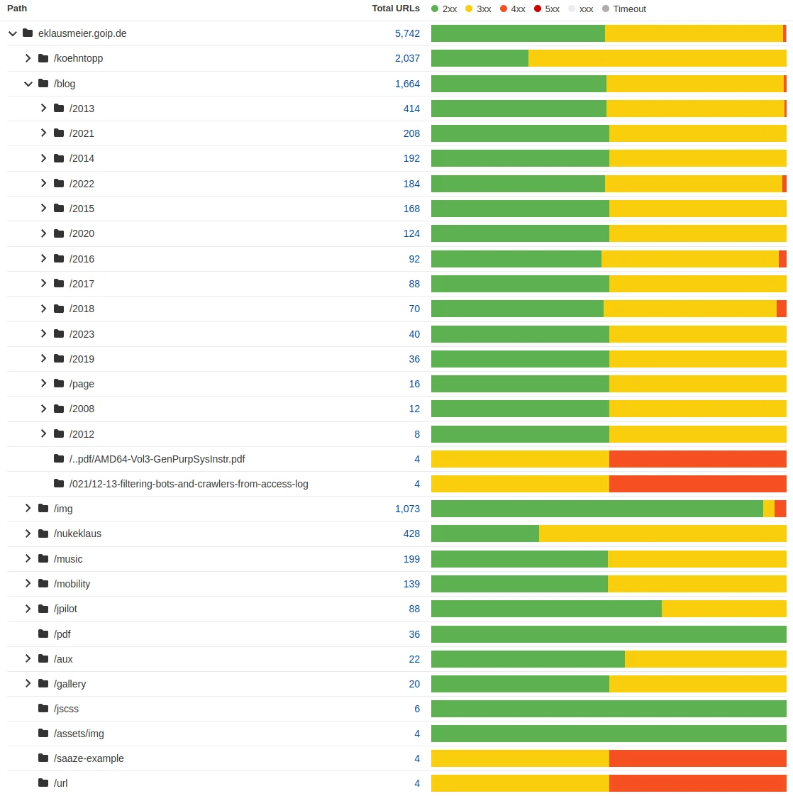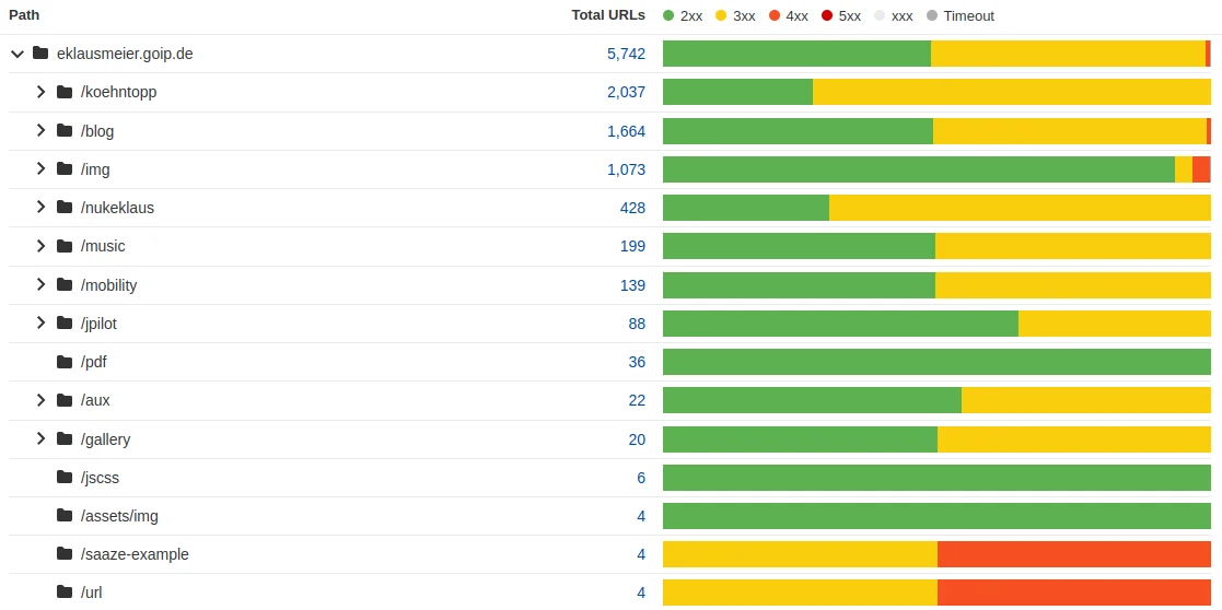 Distribution of HTTP status codes for each "directory" of your website.