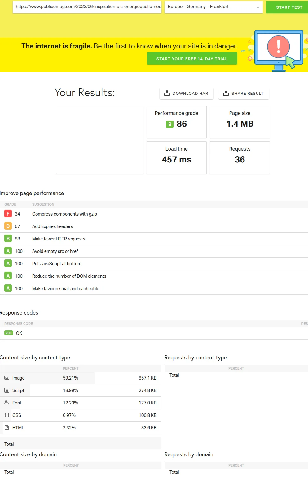- High number of requests, although the magazine contains lots of images.