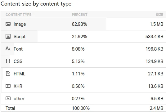 - Lots of webfonts loaded, contributing to more than 10% of the entire page size.