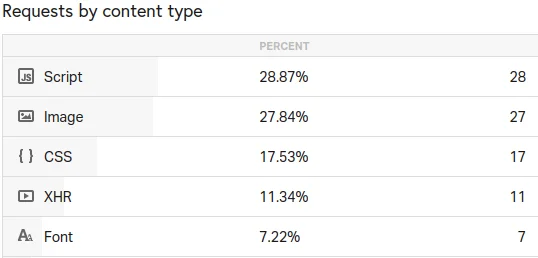 Number of requests per content type: 28 scripts, 17 CSS files.