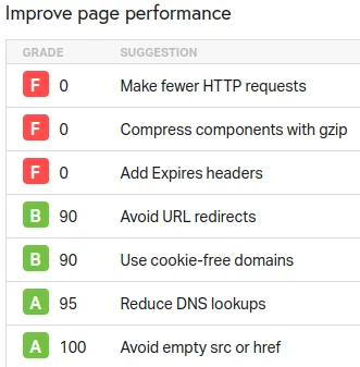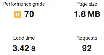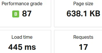 The results for the original website, based on WordPress, are indeed worse on every dimension: page size, load time, number of requests. In comparison to the modified version using Simplified Saaze the ratio is roughly: